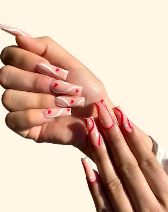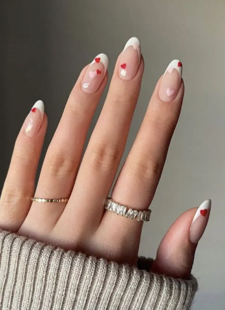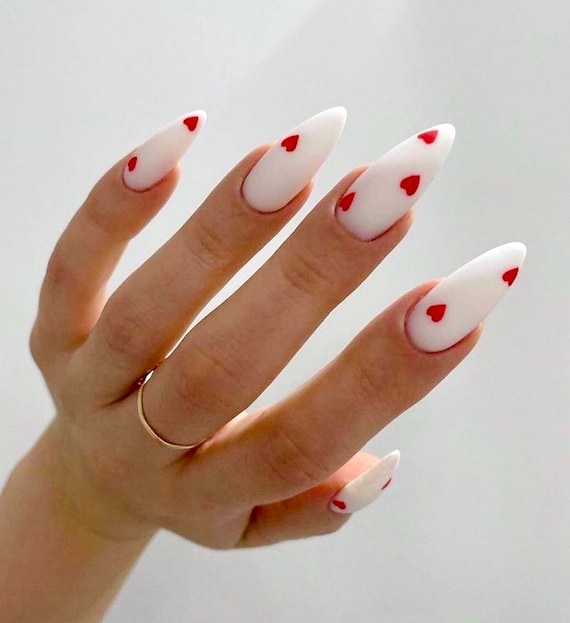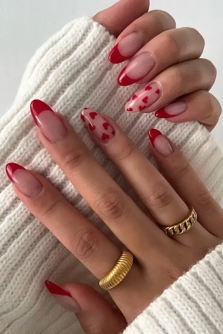 3. Heart Accent Nails: Nothing says "Valentine's Day" like hearts! Adding heart-shaped accents to your nails can turn any manicure into a festive celebration. You can choose to feature one or two accent nails with small heart designs, or go all out with multiple hearts in various sizes and colors. Red, pink, or even metallic hearts can add a playful touch to your Valentine's nails.