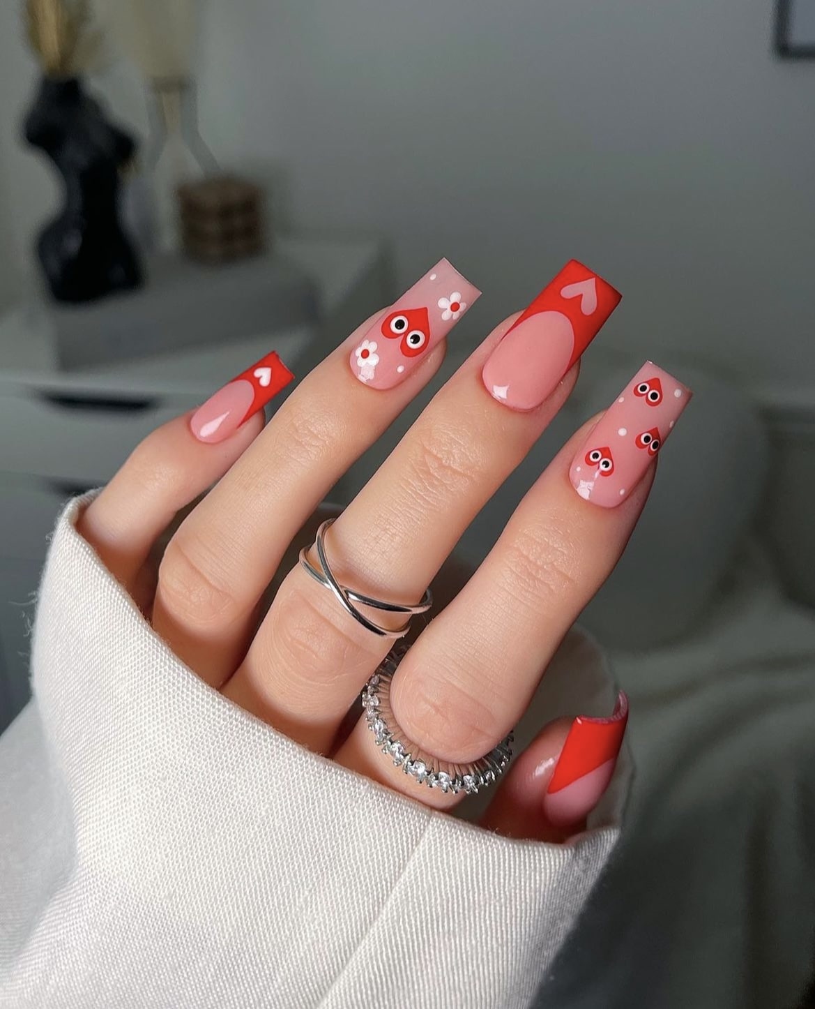 5. French Manicure with a Twist: The French manicure is a classic, but adding a Valentine's twist makes it even more special. Instead of the traditional white tips, you can opt for red or pink tips to give your nails a romantic upgrade. You can also add tiny heart designs or a touch of glitter to the tips for added flair. This modern take on the French manicure is perfect for those who want something subtle yet festive.