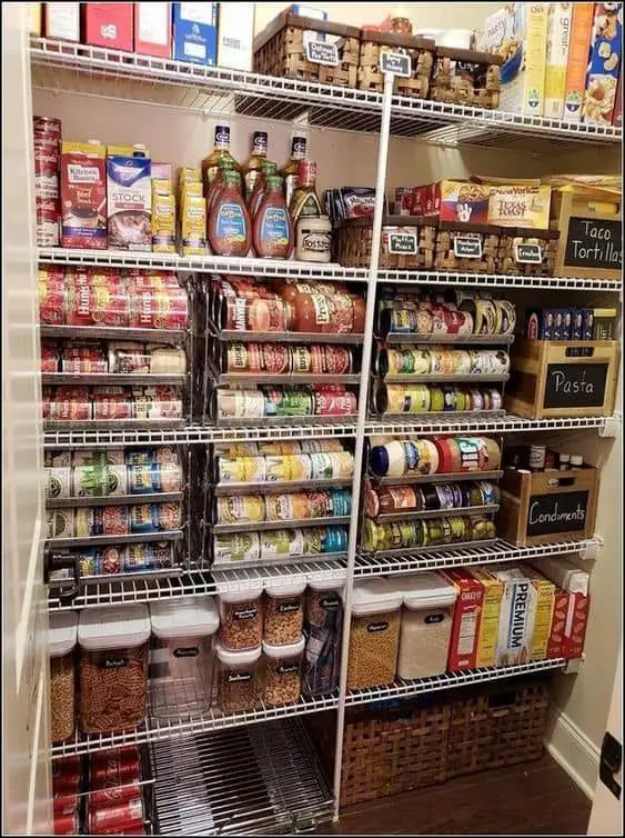 4: Install Sliding Baskets: Sliding baskets or pull-out drawers are perfect for tight spaces. They let you utilize the depth of your pantry without losing track of what’s stored at the back. Look for wire or mesh options to make spotting items even easier.